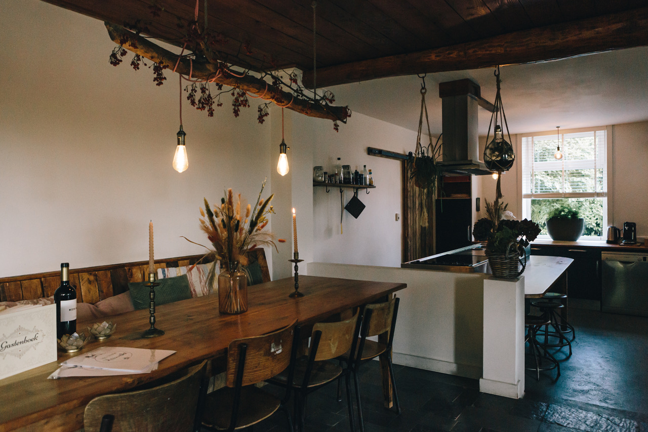 Betreed de ruime woonkamer met zijn open keuken en knapperende open haard. Hier komt de rustieke charme van het platteland tot leven. Deze idyllische setting vormt het ideale canvas voor het vastleggen van verschillende momenten en verhalen.
