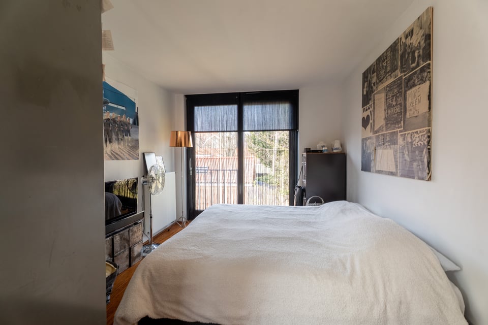 Slaapkamer, werkkamer en de patio