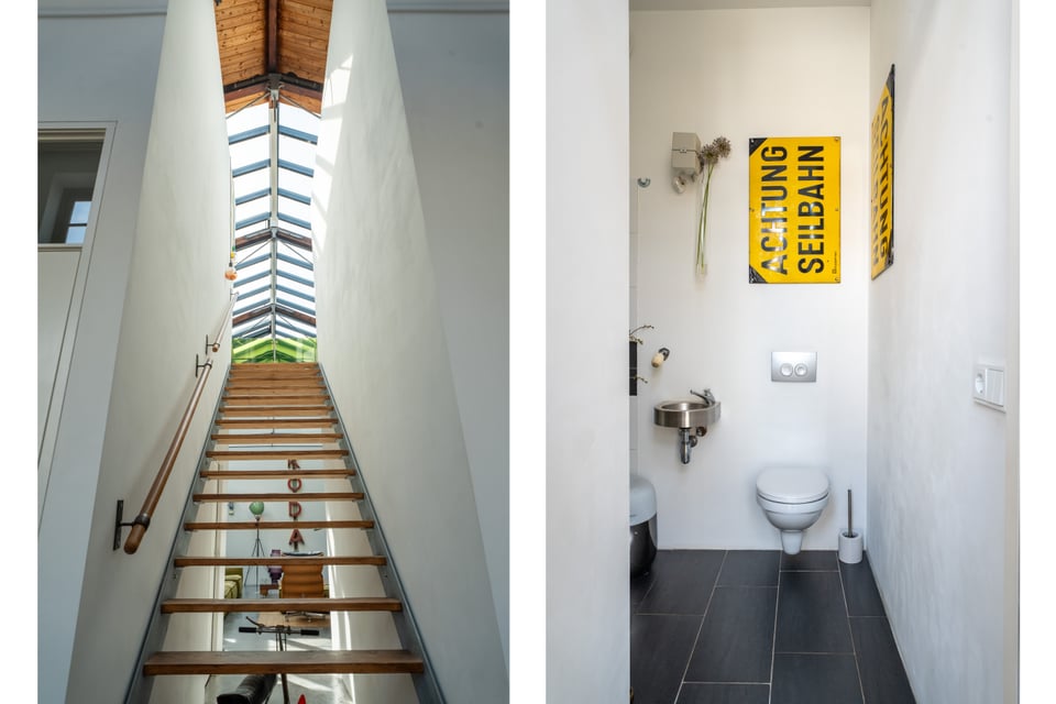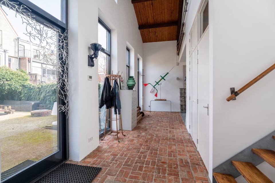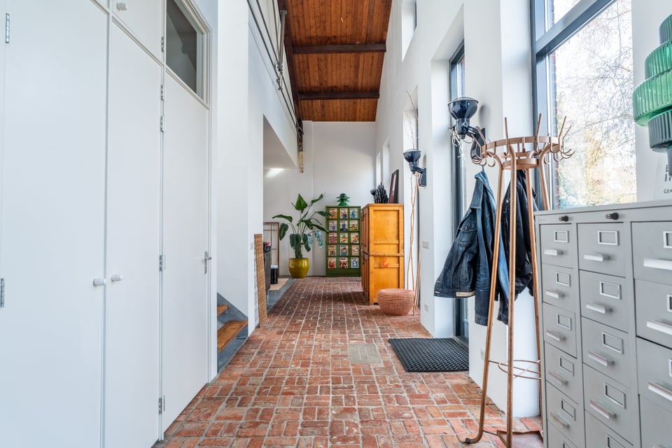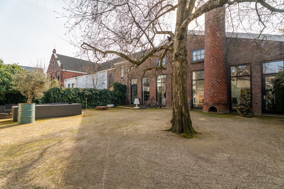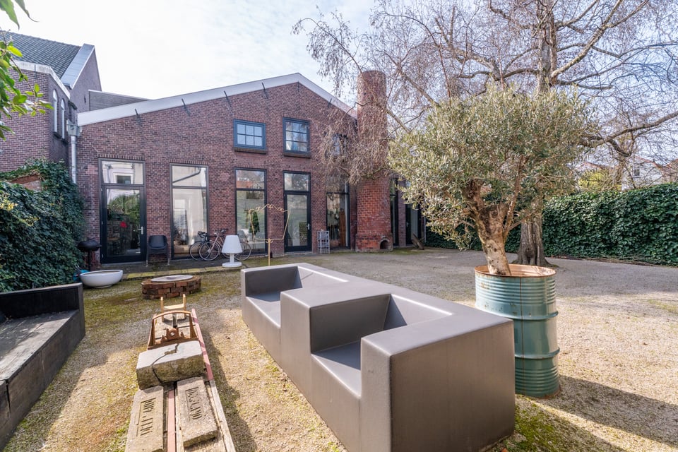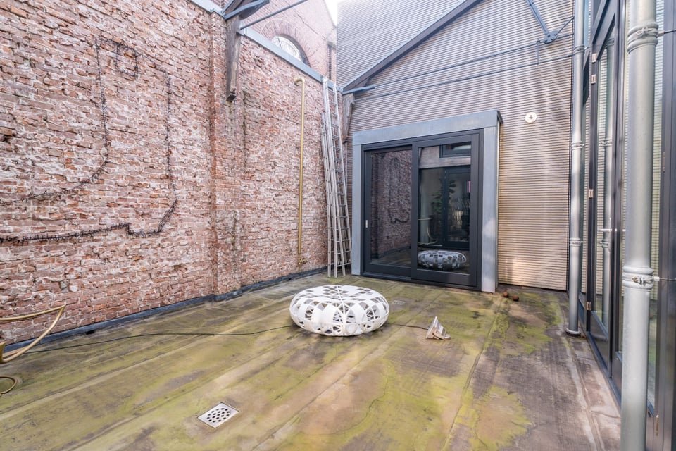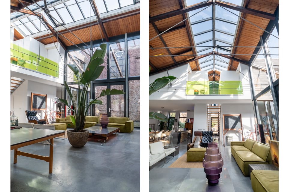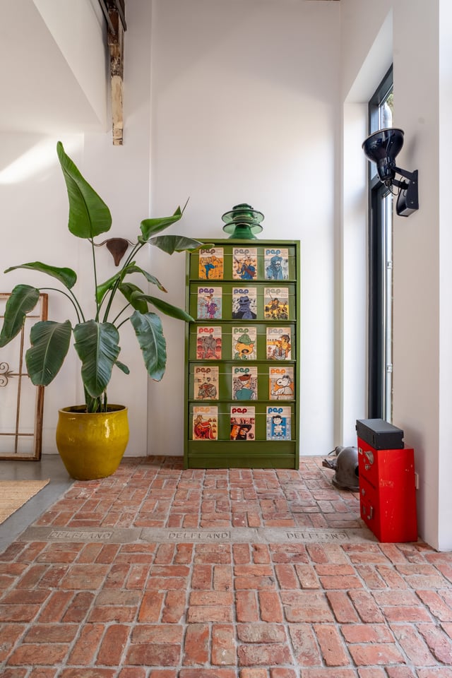 In het centrum van Delft vind je deze industriële loft. Verscholen op een binnenplaats tussen twee Delftse grachten. Dat “verscholen” is precies wat het zo bijzonder maakt. Je loopt erdoorheen en beseft: dit is geen gewone locatie. Dit is een 300 jaar oude loods. Ooit onderdeel van De Grieksche A, een beroemde Delfts Blauw plateelbakkerij. Volledig omgebouwd tot een 275m² grote loft vol karakter, daglicht en onverwachte details.