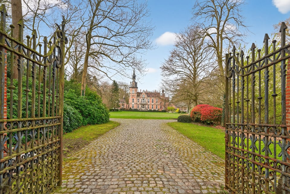 Rondom het kasteel strekt zich een uitgestrekt kasteelpark uit met eeuwenoude bomen, een vijver en verzorgde parktuinen. De kasteelgevel zelf, bakstenen, torentjes, de toegangspoort en oprijlaan, levert buitenshuis tientallen unieke hoeken op.