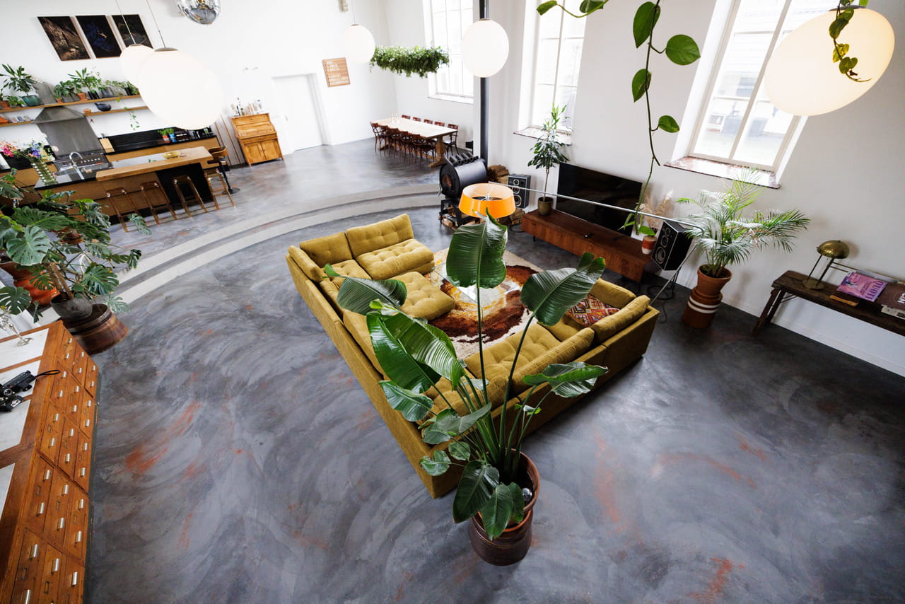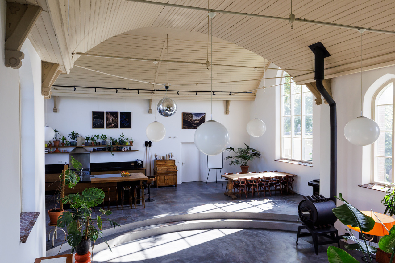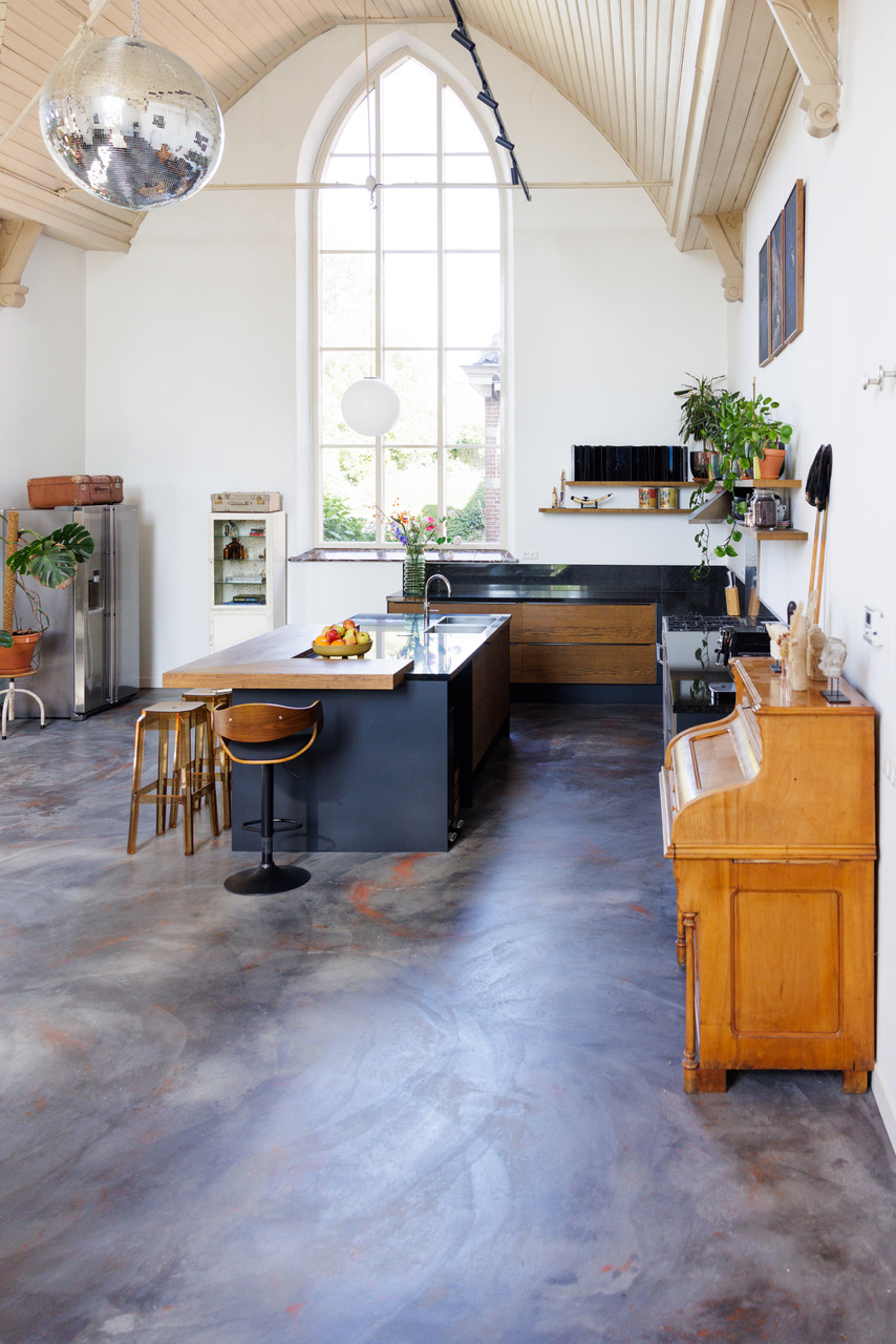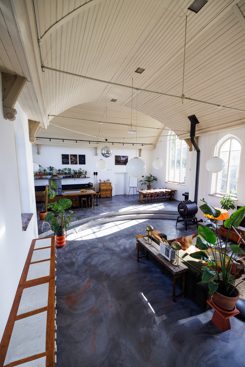 Die vide met de orgel en de gele kasten geeft je nóg een shoothoek van bovenaf. En die betonvloer met z’n natuurlijke variaties in kleur? Fotografeert mooi zonder te dominant te zijn.