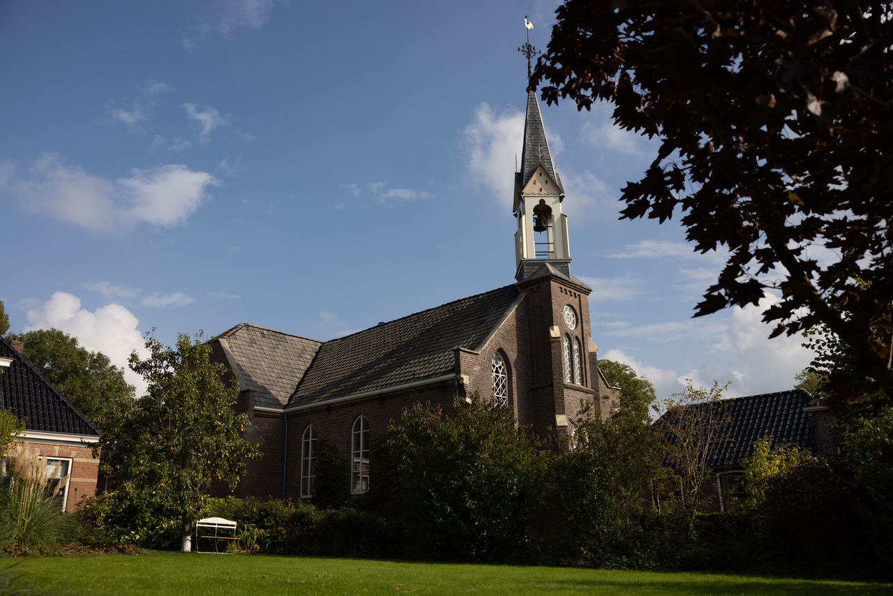 De locatie ligt in Hijum, Friesland. Gratis parkeren voor de deur, rustige omgeving, en genoeg ruimte om materiaal in en uit te laden. De kerk zit op de begane grond, dus geen gedoe met trappen of liften.