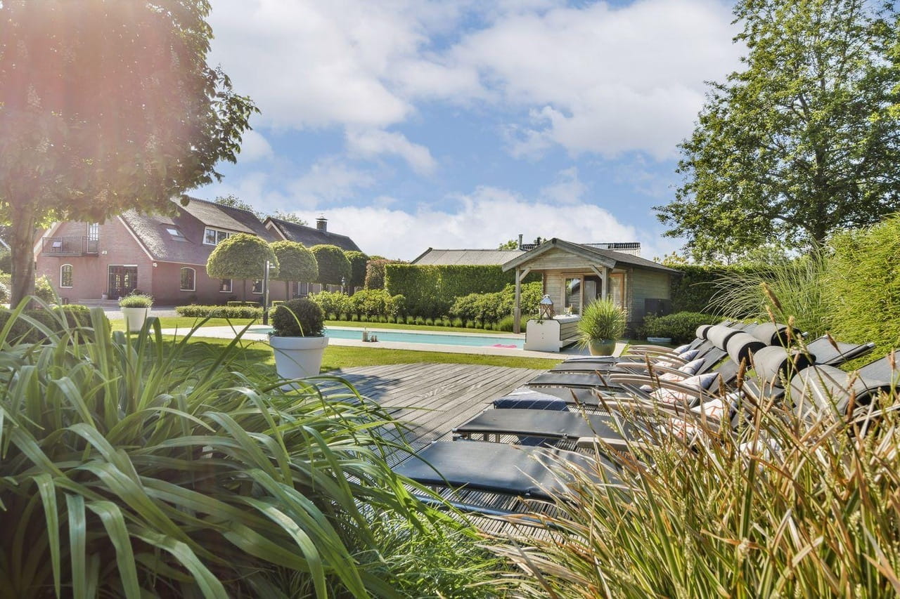 Het perceel telt 20.000m², waarvan 12.500m² weiland. Een aangelegd tuin met buitenzwembad, en dat Hollandse landschap dat zich aan alle kanten uitstrekt. Voor outdoor lifestyle shoots hoef je hier echt niet ver te zoeken naar de perfecte achtergrond.