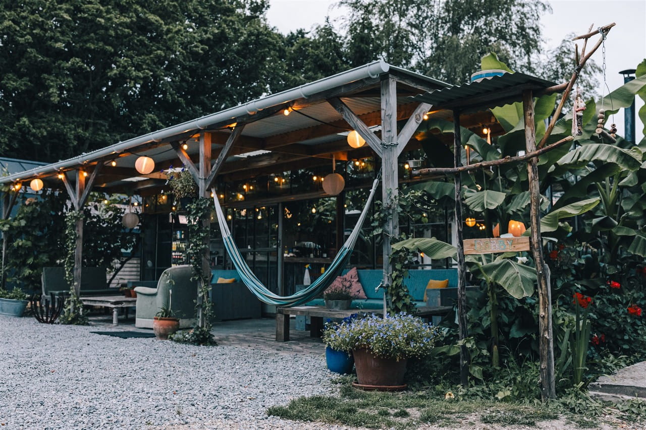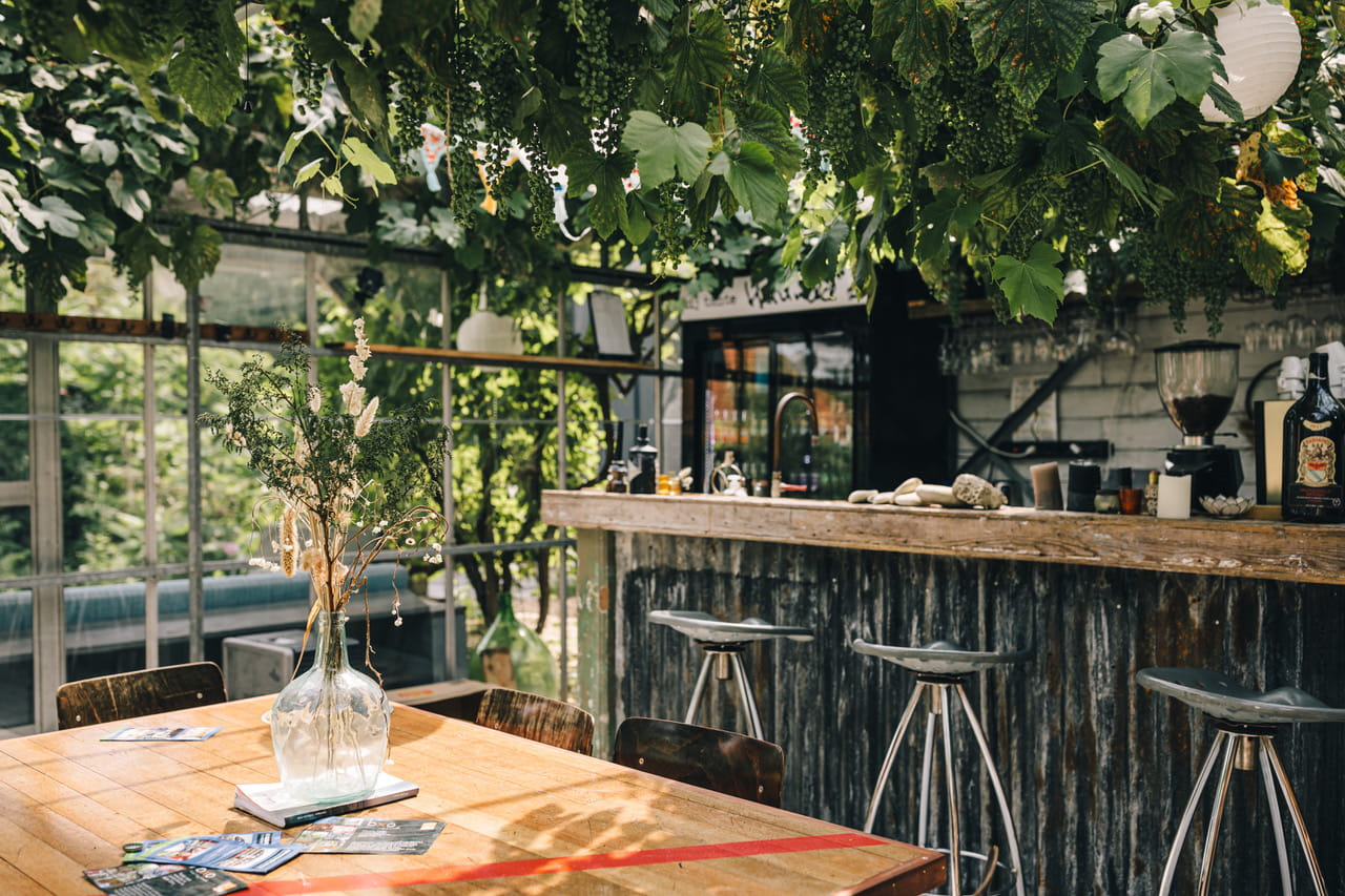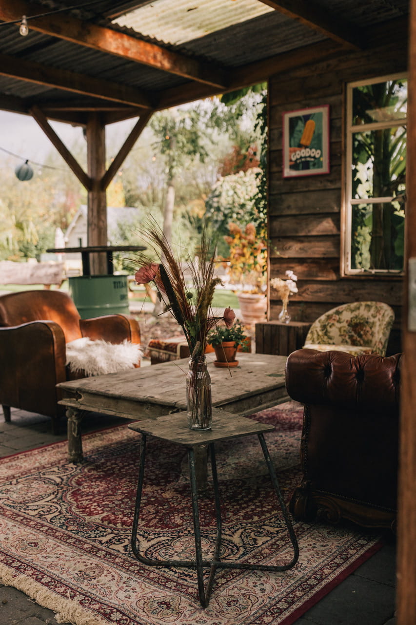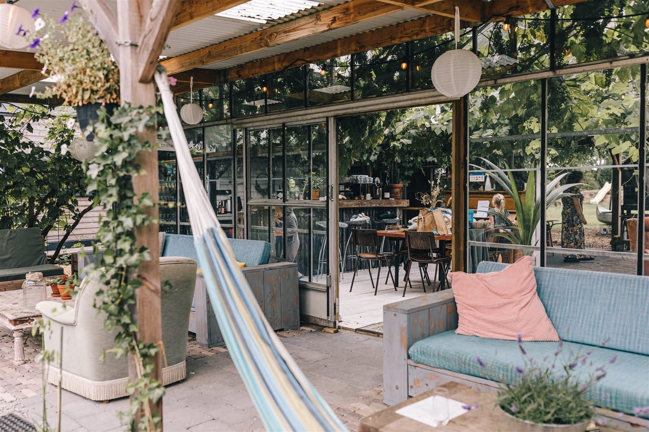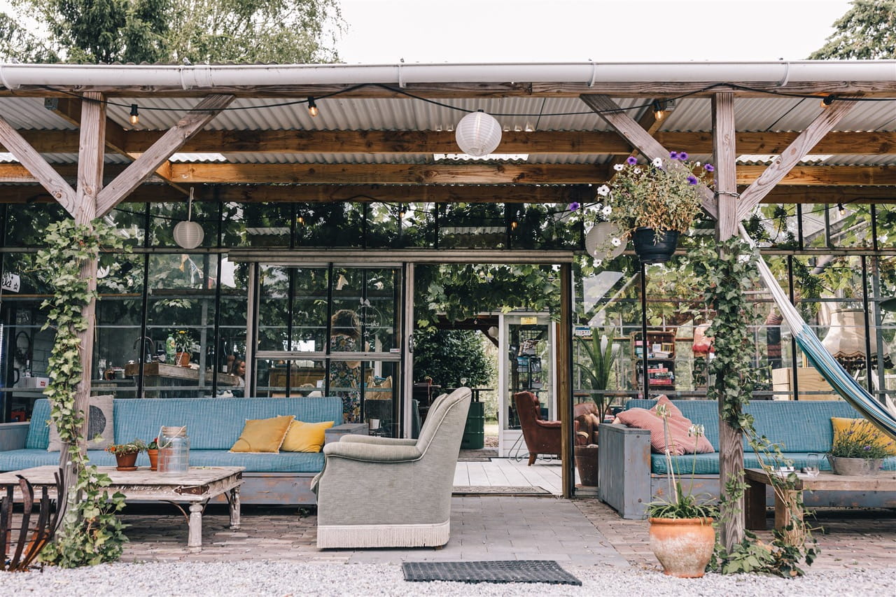 Deze plantenkas is getransformeerd tot een sfeervolle open huiskamer, compleet met een bar en kachel. Het glazen dak en de wanden zorgen voor een overvloed aan natuurlijk licht. Dit maakt de locatie perfect voor shoots die een heldere en luchtige sfeer vereisen.