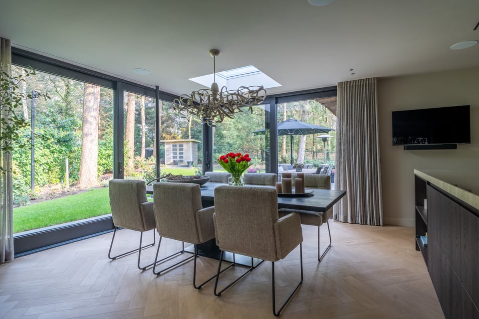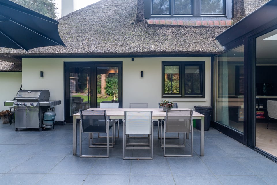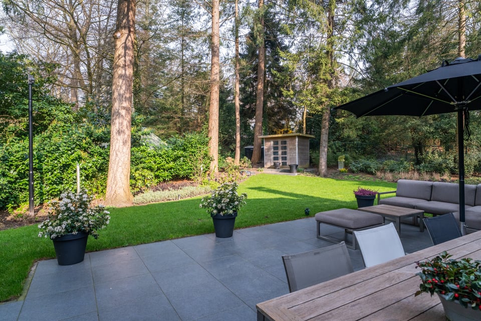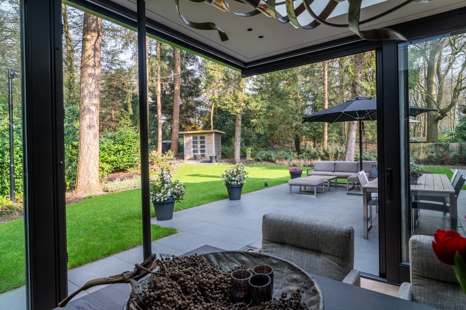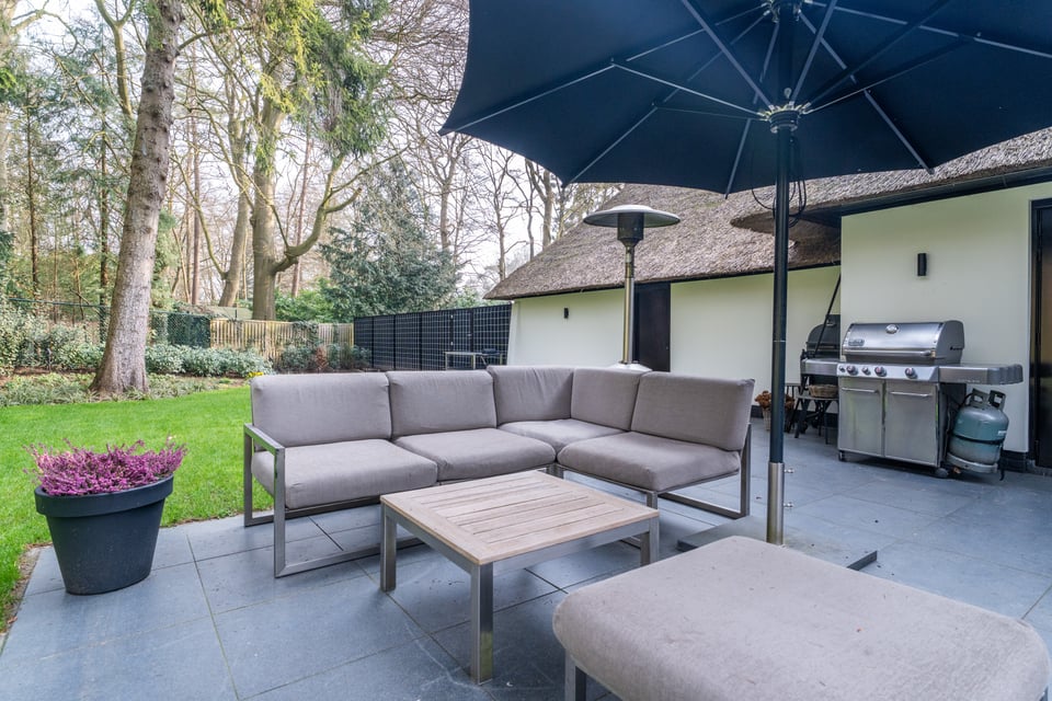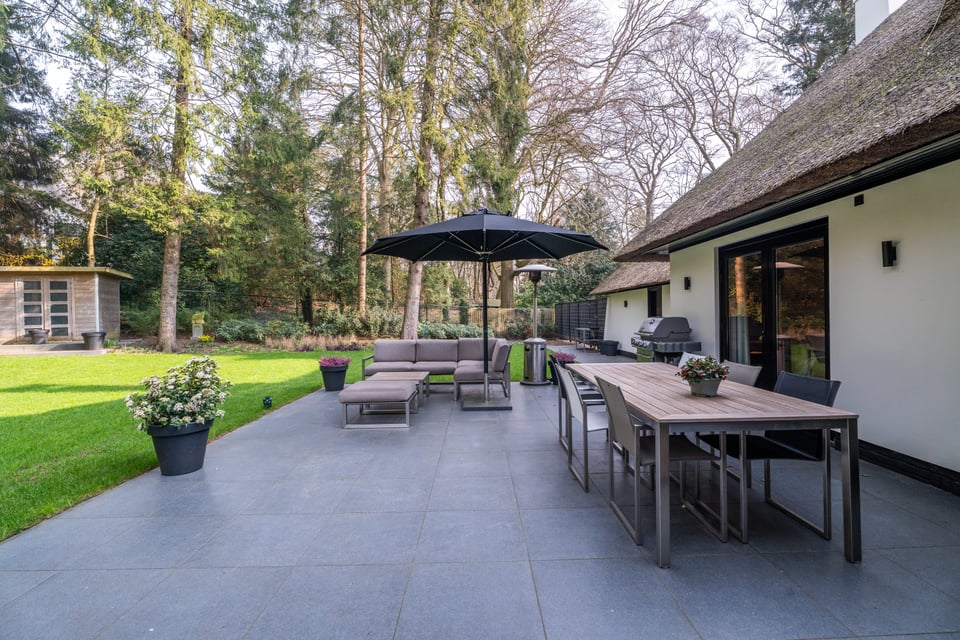 Het terras sluit direct aan op de woonkamer en tuinkamer. Ruim, groen en privé. Op zoek naar een villa shootlocatie in ‘t Gooi? Neem contact op met Guapa voor de mogelijkheden.